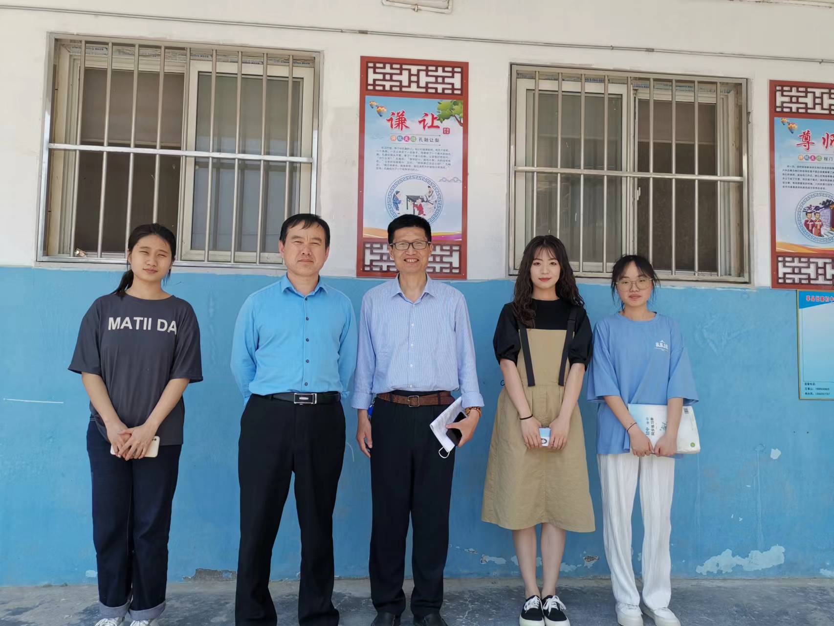 图1:莘县张寨中学(注:左2为我校1992级思政系校友王富山校长)
