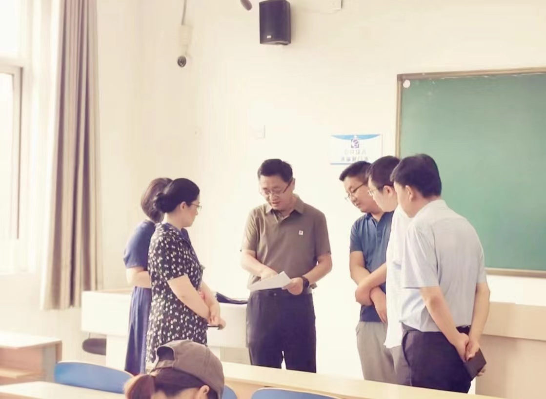 6月23日上午,校党委书记关延平深入太阳集团城娱8722调研检查期末考试,检查了教师履责、考试安排、考风考纪、秩序环境等情况,听取了学院工作汇报,就学院发展进行了交流研讨。校党委常委、副校长赵明吉,学生工作部(处)负责人及学院领导班子成员一同参加活动。