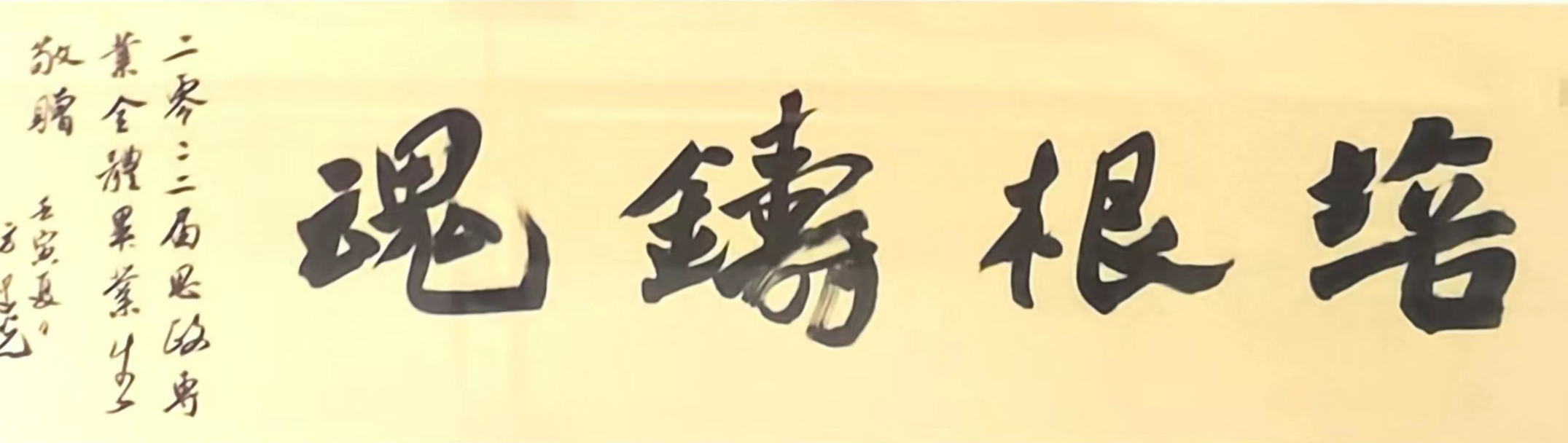 6月29日,太阳集团城娱87222022届毕业生为母校赠送纪念品——“培根铸魂”牌匾,太阳集团城娱8722党委书记张华筠、院长刘子平、党委副书记副院长范华亮以及部分教师代表出席赠送仪式。
