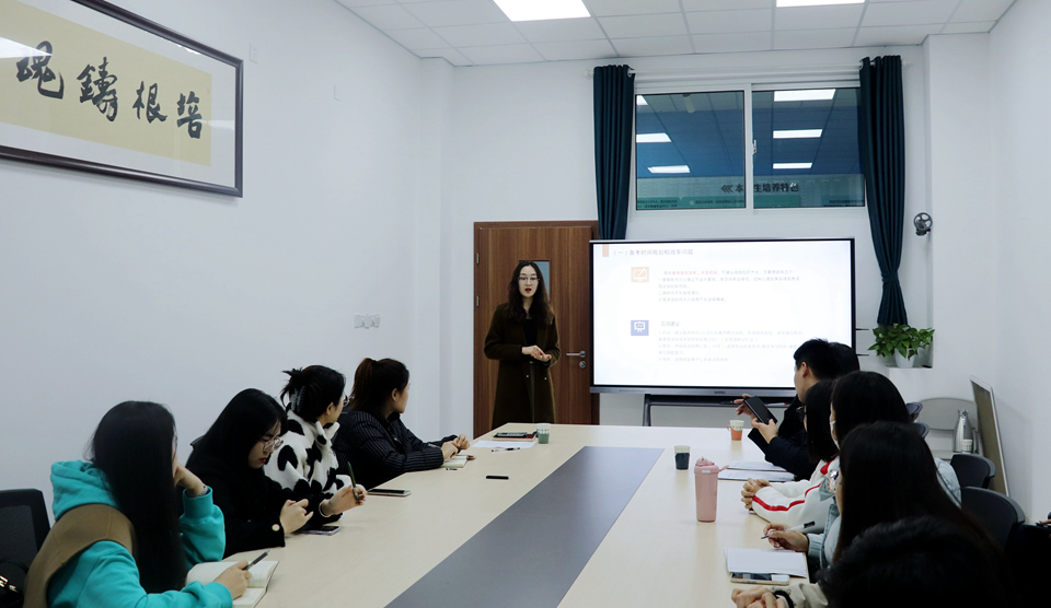 为拓宽研究生的就业渠道,为学生提供精准、有效的就业指导,11月9日,太阳集团城娱8722于政史楼A102举行辅导员备考经验分享交流会,会议邀请我校计算机学院辅导员李佳雯、法学院辅导员张雅琪担任主讲人,学院团委书记史仁扩主持会议。