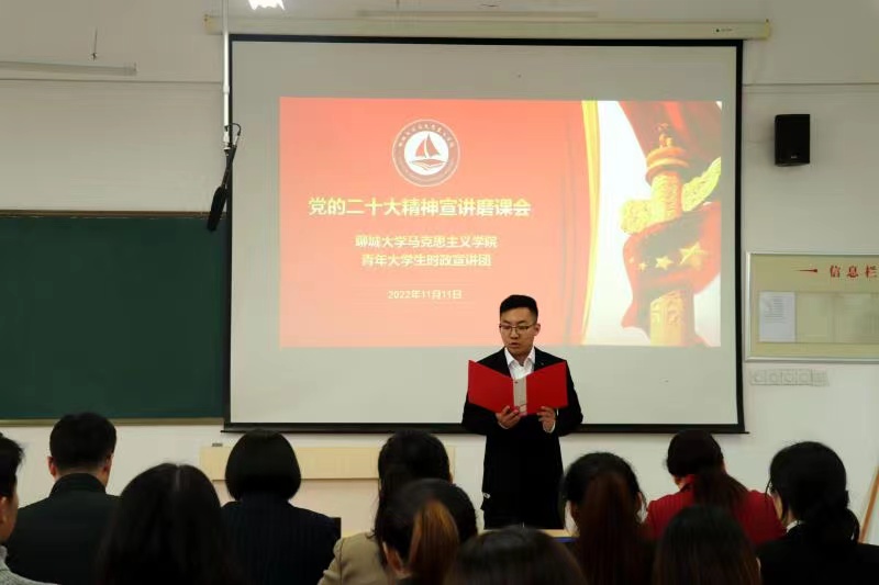11月11日,太阳集团城娱8722举行党的二十大精神宣讲磨课会,学院党委书记张华筠,党委副书记、副院长范华亮,概论教研部副教授郑继江、李德芳,辅导员李洪霞担任指导教师,青年大学生时政宣讲团成员及学院主要学生干部参加。