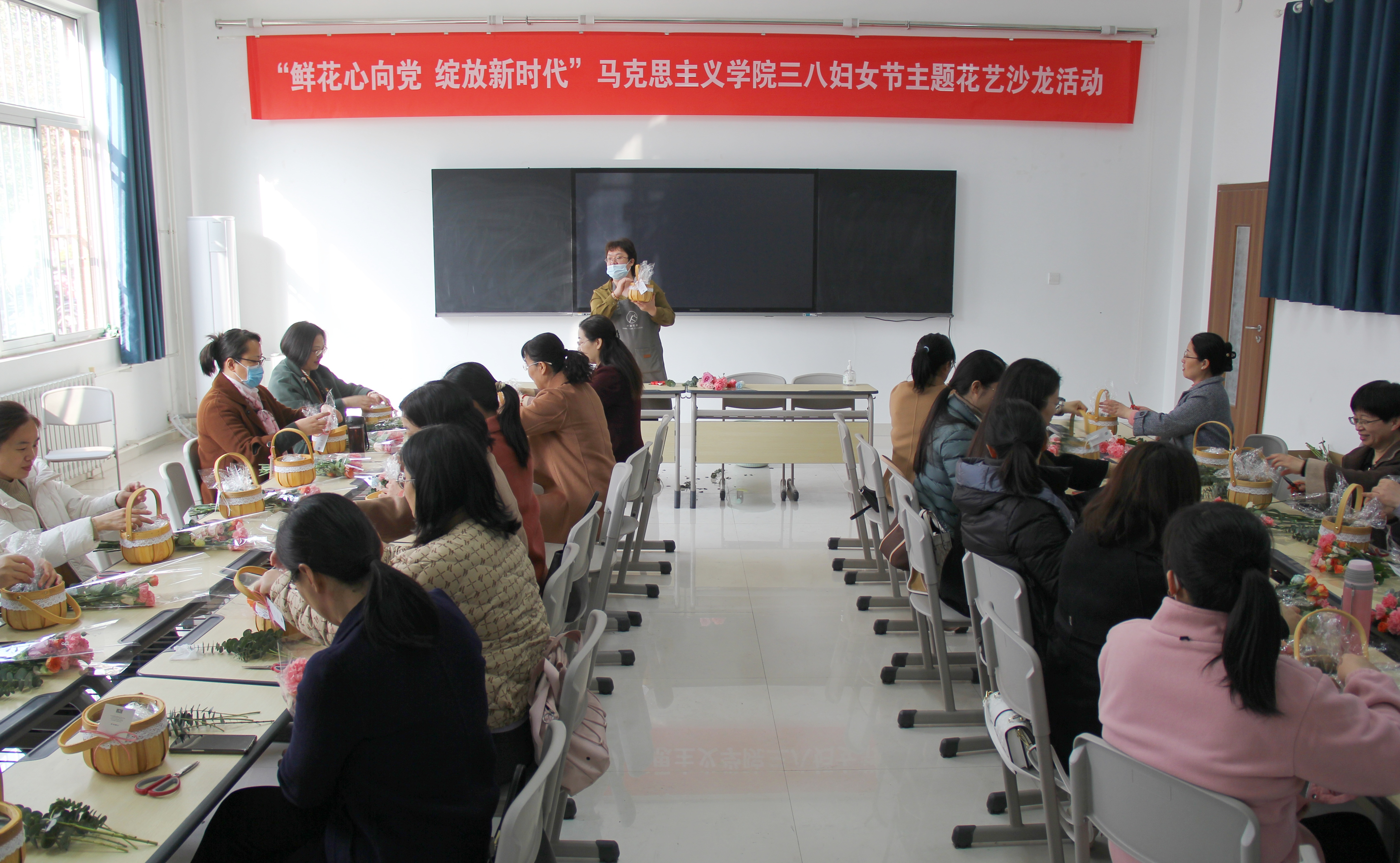 为庆祝第113个“三八”国际妇女节,进一步丰富女教职工精神文化生活,太阳集团城娱8722工会组织举办“鲜花心向党 绽放新时代”三八妇女节主题花艺沙龙活动,组织学院全体女教职工共同学习花艺技法,学院党委书记张华筠出席活动并代表学院党委领导班子向全体女教职工送上亲切的慰问和祝福。