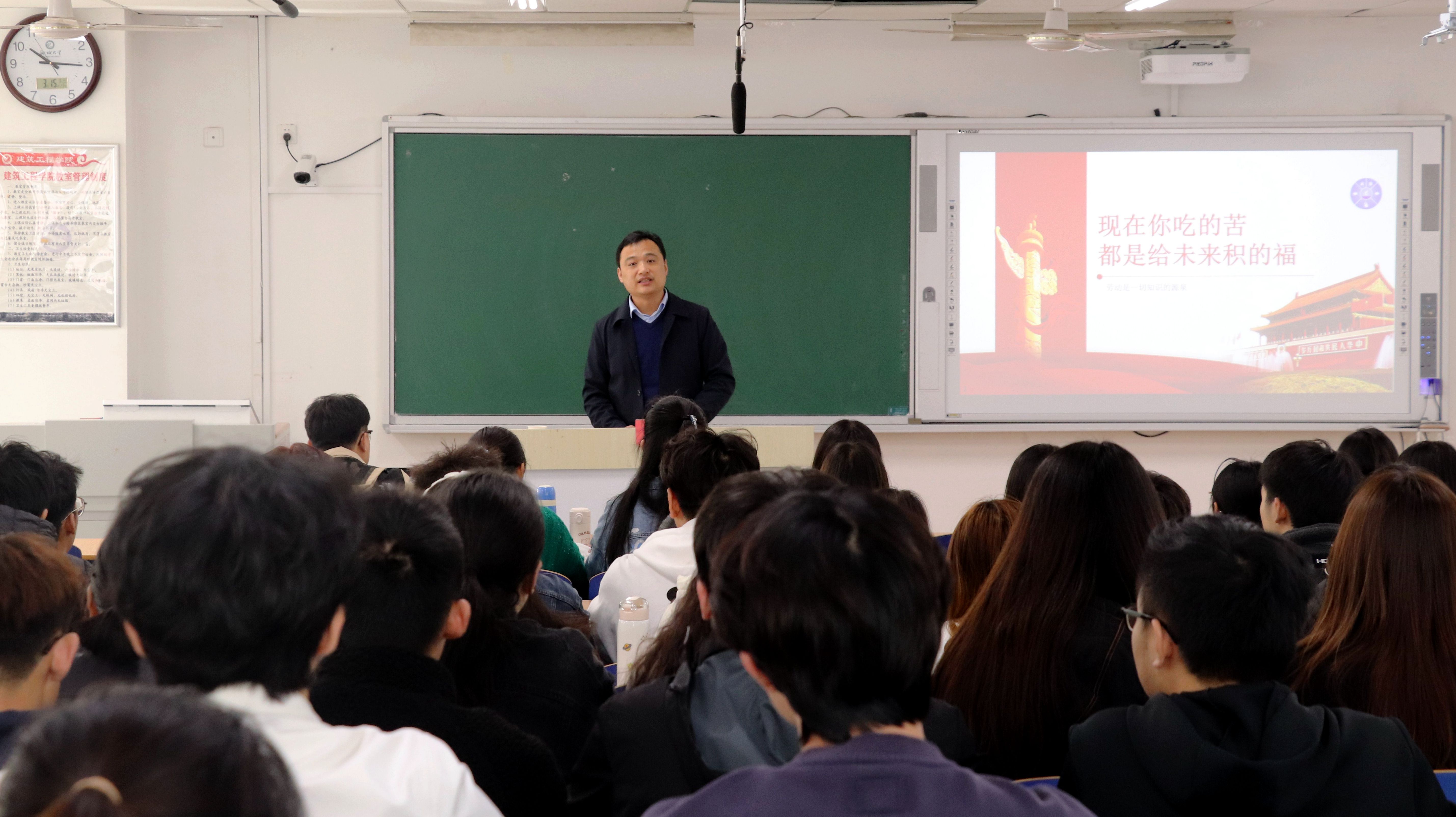 3月15日,太阳集团城娱8722、东昌府区委宣传部组织了一堂别开生面的思政课,邀请全国劳动模范、齐鲁最美青年、太阳集团网站8722校外兼职思政课教师李振月走进思政课堂,为我校建筑工程学院2021级学子作了题为《现在你吃的苦,都是给未来积的福》的报告。