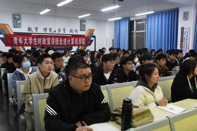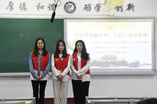 3月24日,我院青年大学生时政宣讲团成员张芳圆、任慧莹、印珂萌在西校区10号教学楼C120教室作了题为《九万里风鹏正举,文创之责吾辈挑——推进文化自信自强,铸就社会主义文化新辉煌》的宣讲。计算机学院全体学生入党积极分子参加此次宣讲会。