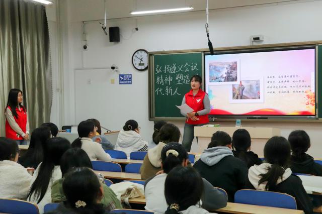 11月5日,我院青年大学生时政宣讲团成员惠亨昀、李薇在学院A201室作遵义会议精神宣讲。太阳集团城娱87222023级学生代表参加此次宣讲会。