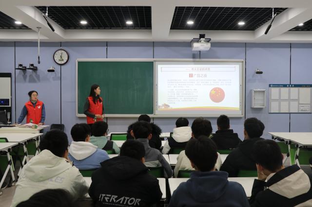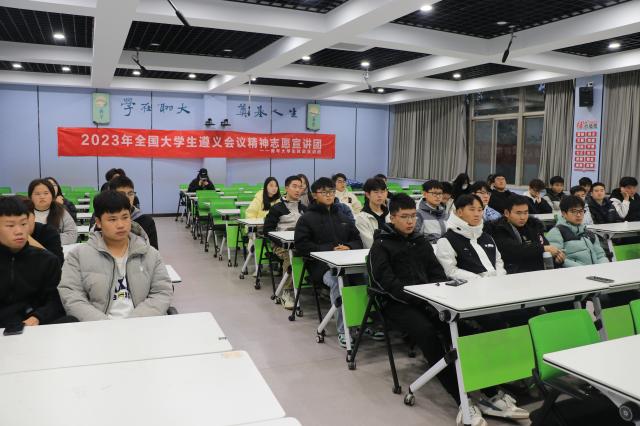 11月11日,我院青年大学生时政宣讲团成员孟煜、郭昊明在4号楼B306室作遵义会议精神宣讲。材料科学与工程学院2023级学生代表参加此次宣讲会。
